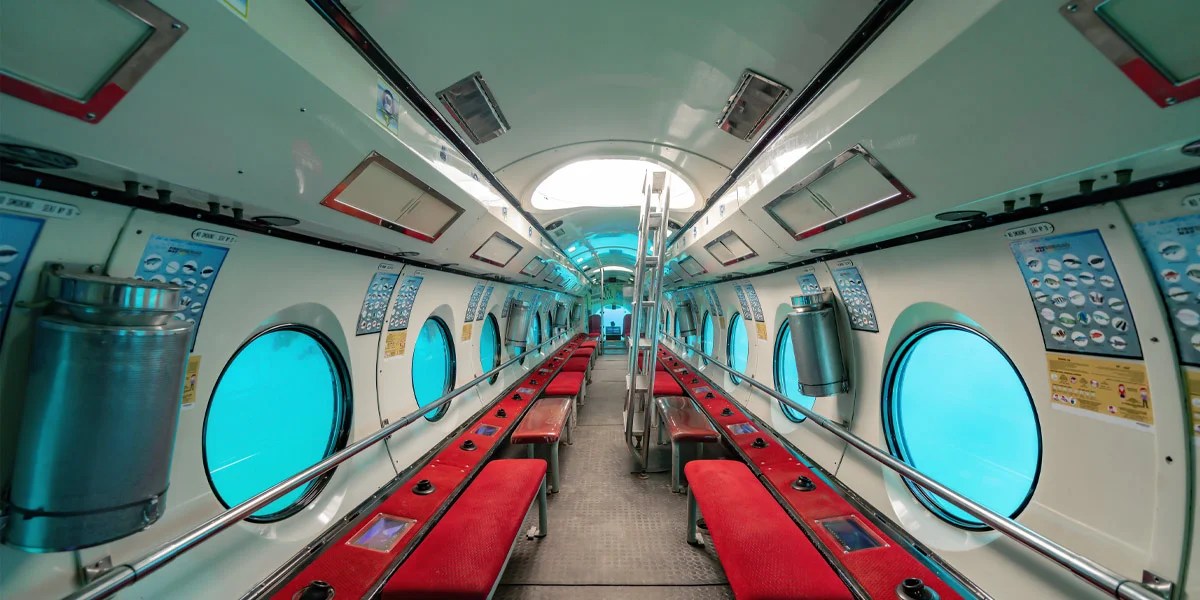 Profitez d’une vue panoramique sous la surface et explorez le monde sous-marin à plus de 10 mètres de profondeur.